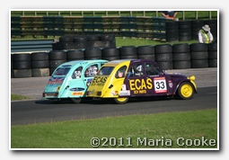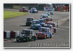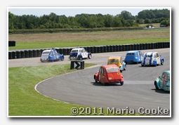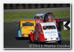 Croft circuit, located just outside Darlington in County Durham, has some pretty stringent noise restrictions. As such, the 2CVs were required to have extra exhaust silencer boxes fitted for rounds 7, 8 and 9 of the ECAS 2CVPARTS.COM championship. Round 9 was to be a 2 hour mini-enduro race held outside the normal race day hours, from 6:15pm until 8:15pm, so being quiet and behaving was the order of the day. A difficult challenge!