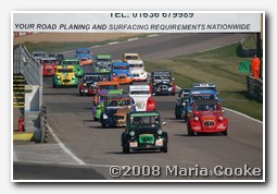 Several cars changed drivers for the second race. Neil Thompson made way for wife Christine in car 24 (Stinky). Steve Panas took over Wayne Cowling's number 2 Gadget Racing car. Pete Sparrow jumped into Christian Callandar's Clockwork Orange #14 car. 'Mad' Pete Cardell-Williams hopped into Andy Smith's #13. John-Paul Wilkinson took over Rambo (#26) from Graham Harper, and Frank Barnard stepped in to replace Nigel Hollis at the wheel of Wee Fiona, the 3rd Hollis Motorsport #70 car.
