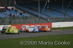 Richard's momentum carried him briefly into 2nd place on lap 3 before Myatt took back the place, and Trevor Williams moved up into 3rd on lap 3 from 8th on the grid. As Richard Hollis settled back into 3rd place, the 68 car of Greg Wheeler was enjoying some sideways action around Luffield corner, trying to find the best line around the tricky long right-hander. Now battling for 4th place, Trevor had an off at Becketts corner and dropped back about 8 places. Neil Thompson, who had started 25th and second to last after problems in qualifying, was now up to 7th after an elecrifying start which saw him overtake 13 cars on the first 2 laps!