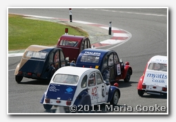 Race report by Steve Sykes: What’s the worst thing that can happen in practice? Have one of your drivers go off at Copse and then have your other driver crash into them, severely damaging both cars? That was the scenario that confronted the Tete Rouge team at Silverstone. The best thing that could happen under the circumstances? That the race was not until the next day. Cue frantic rebuilding, working till midnight on Saturday, a dash back to Lincolnshire for a spare car onto which were grafted the still usable panels from the totalled shell of Jessica Owen’s car (the resulting red and silver colour scheme was much admired) and both Tete Rouge cars took the start just after lunch on Sunday.