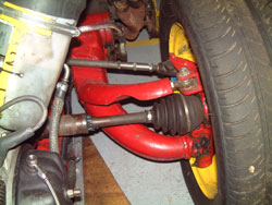 In the past there have been a lot of problems with poor quality casings on the front arms of later cars and this addition will help to spread the load and stop accelerated wear on the arm and king pin. It should also make the cars safer in the event of large impacts to the suspension and should stop meetings like Anglesey where three arms broke in 2006 from happening again. The club is looking into the manufacture of a kit that will include the parts required for the modification. More details of cost and availability will be posted as soon as we know.